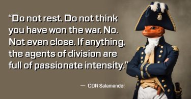 By Major Chase Spears, PhD, USA ret I think, in many ways, the uniformed military may help save us from this president.” –...