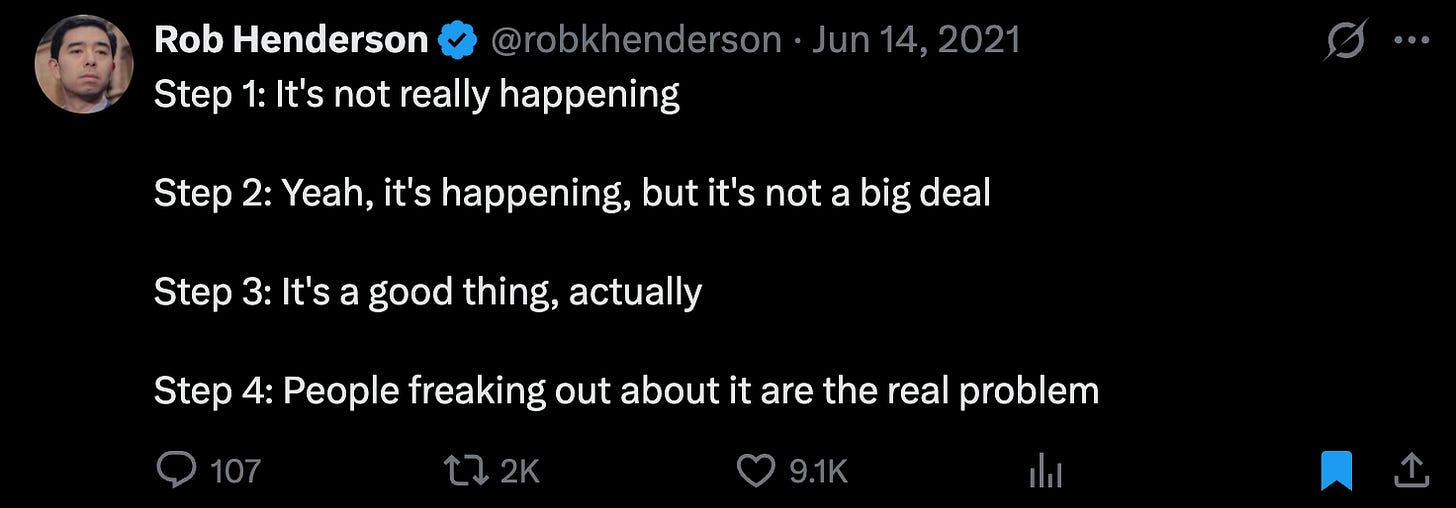 You could feel in the first few years of the Biden Administration that things were getting better, as what had been a few people on the edges complaining, serious people and serious organizations with significant clout were in the fight. We noted as such at the time on a few of the DivThu. Why? Well, after the election of 2020 and the Red Guard’s success in that same year after the George Floyd overdose death, the mask came off.