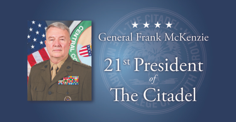 (The Citadel Press Release) The Citadel Board of Visitors announced today that they have selected Gen. Frank McKenzie, USMC (Ret.), ’79, to serve as the 21st president of The Citadel.