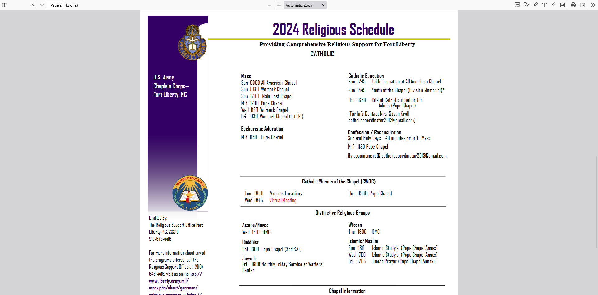 Expecting it to be an error, I checked the Fort Lee website—which confirmed it was real. The Army was promoting a pagan worship service at the garrison’s memorial chapel on Sundays from 0800 to 1000.