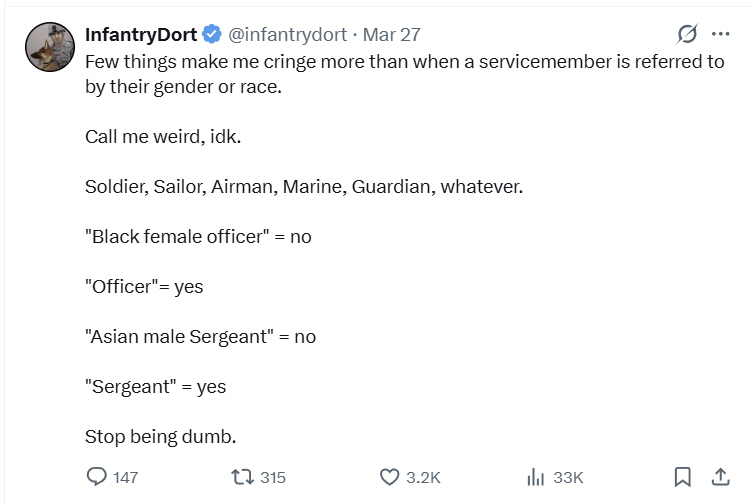 Whatever color of skin or gender, it doesn’t matter. The leftwing media headlines, though, all focus only those characteristics. They remain stuck in miserable CRT/DEI identity thinking that nearly destroyed the military under the Biden administration: