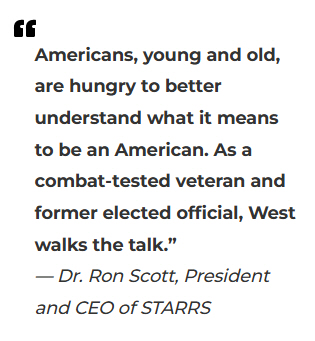 “Americans, young and old, are hungry to better understand what it means to be an American. As a combat-tested veteran and former elected official, West walks the talk as an important spokesman for our Nation,” Scott said.
