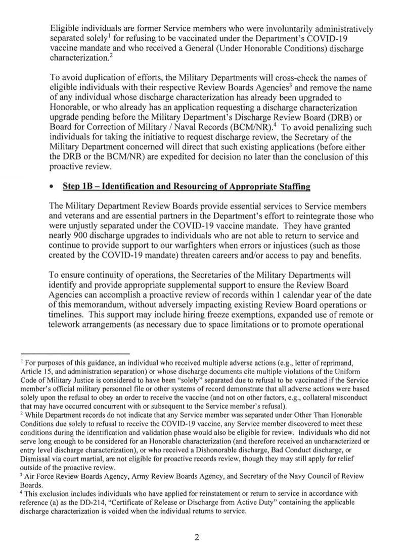 The “Guidance to Restore Honor to Service Members Separated Under the Coronavirus Disease 2019 Vaccine” memorandum can be found here.