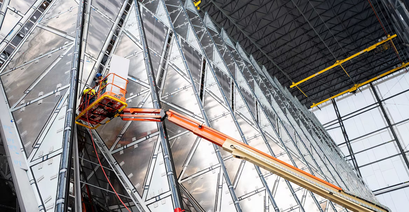 Enclosed by a pre-engineered building, contractors are working year-round to restore the facility. This structure protects the chapel from the elements during construction and facilitates continuous work despite the area’s diverse weather patterns. Inside, crews are meticulously repairing decades of water damage, remediating environmental hazards, bringing the facility up to code, and correcting design flaws to restore the 52,000 square-foot chapel (with its 17 steel spires) to its full glory.